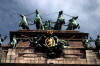 The stained glass ceiling of the Astoria lobby in Brussel The Congress Column, dedicated to the unknown soldiers of both World Wars The Cathedral of Sts Michael and Gudule, patron saints of the city Who do you think the central figure resembles? Brussel's Arc de Triomphe in the Parc du Cinquantenaire Planned as part of Belgium's 50th anniversary in 1880, the arch was not finished until 1905, just in time for its 75th