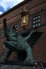 These dragons abound in the square. In the background, you can see the golden statue of Bishop Absalon.