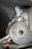 Holger Danske, who legends says will awaken to rescue Denmark In the casemates below the castle Krongborg is the setting for Shakespeare's Hamlet. A bas-relief of the playwright greets visitors when they enter the castle. The cannons point towards Sweden, which is easily visible across the channel