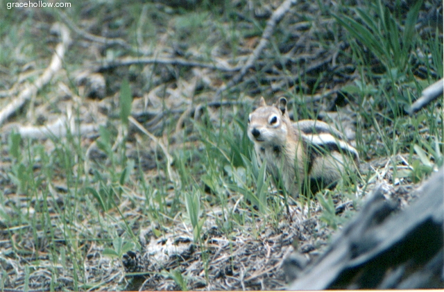 Subject: Chipmunk. Location: Yellowstone National Park, WY. Click on the image to the left to see a larger rendition. |