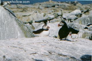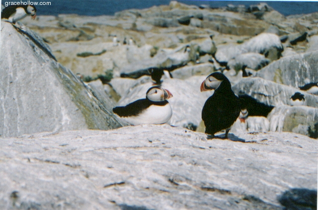 Subject: Atlantic Puffin. Location: Machias Seal Island, ME. In Maine, Puffins can be found on Seal Island, Petite Manan, Matinicus Rock and Eastern Egg Rock, but there are more on Machias Seal Island than the others combined - 3000!Click on the image to the left to see a larger rendition. |