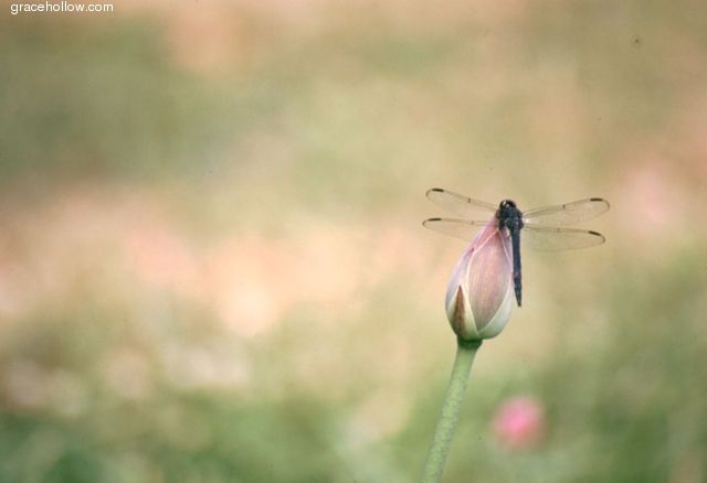 Subject: Lotus & Dragonfly. Location: Perry's Water Garden, Franklin, NC. Click on the image to the left to see a larger rendition. |