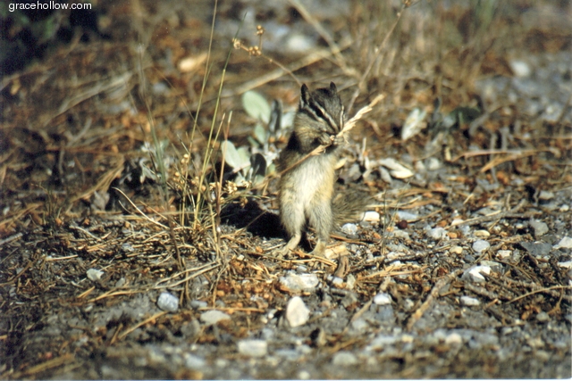 Subject: Chipmunk. Location: Banff National Park. Click on the image to the left to see a larger rendition. |