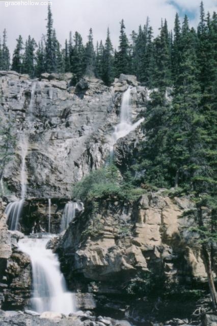 Subject: Tangle Creek Falls. Location: Icefields Parkway, Jasper National Park; Alberta, Canada. On the road from Banff National Park towards Jasper, we came across this magnificent cascade. This frame captures the whole cascade, from top to bottom.Click on the image to the left to see a larger rendition. |