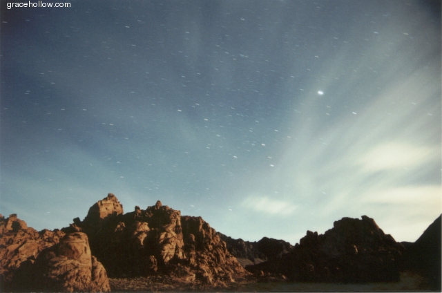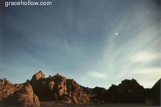 Subject: Leonid Meteor Shower 2002. Location: Valley of Fire, NV. Click on the image to the left to see a larger rendition. |