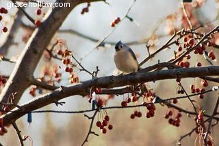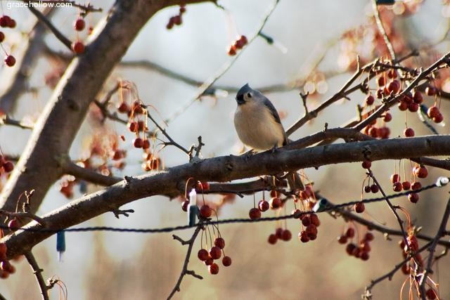 Subject: Bird in tree with berries. Location: Indiana. Click on the image to the left to see a larger rendition. |