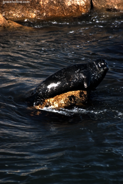 Subject: Seal surfing on a rock. Location: Monterey Bay. Click on the image to the left to see a larger rendition. |