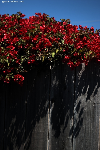 Subject: Flowers on a fence. Location: Monterey, California. Click on the image to the left to see a larger rendition. |