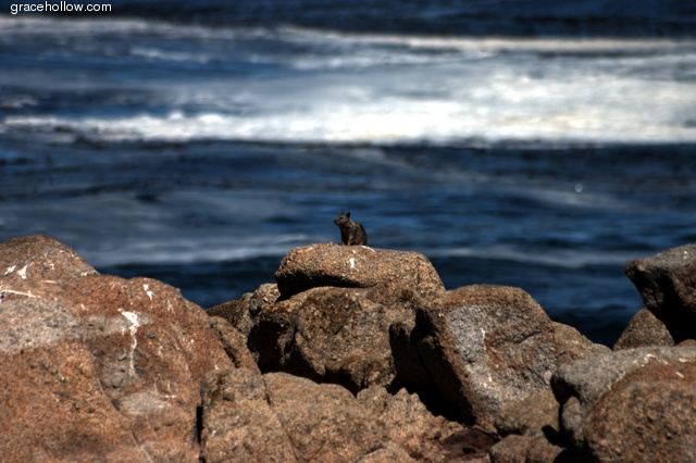 Subject: Squirrel on the ocean rocks. Location: Monterey, California. Click on the image to the left to see a larger rendition. |