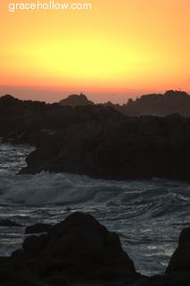 Subject: Sunset over the rocky coast. Location: Monterey, California. Click on the image to the left to see a larger rendition. |