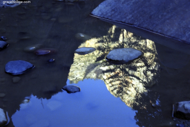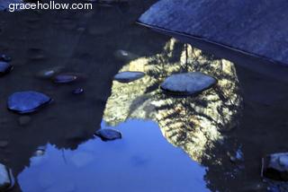 Subject: Reflection of a mountain in a river with stones. Location: Zion National Park, Utah. Click on the image to the left to see a larger rendition. |