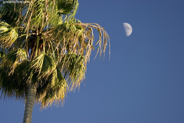 Subject: Moon by a palm tree. Location: La Jolla, California. Click on the image to the left to see a larger rendition. |