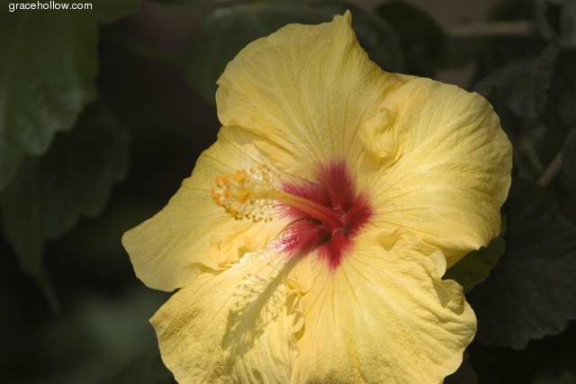 Subject: Hibiscus. Location: San Diego, California. Click on the image to the left to see a larger rendition. |